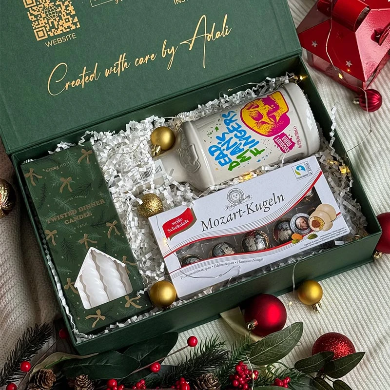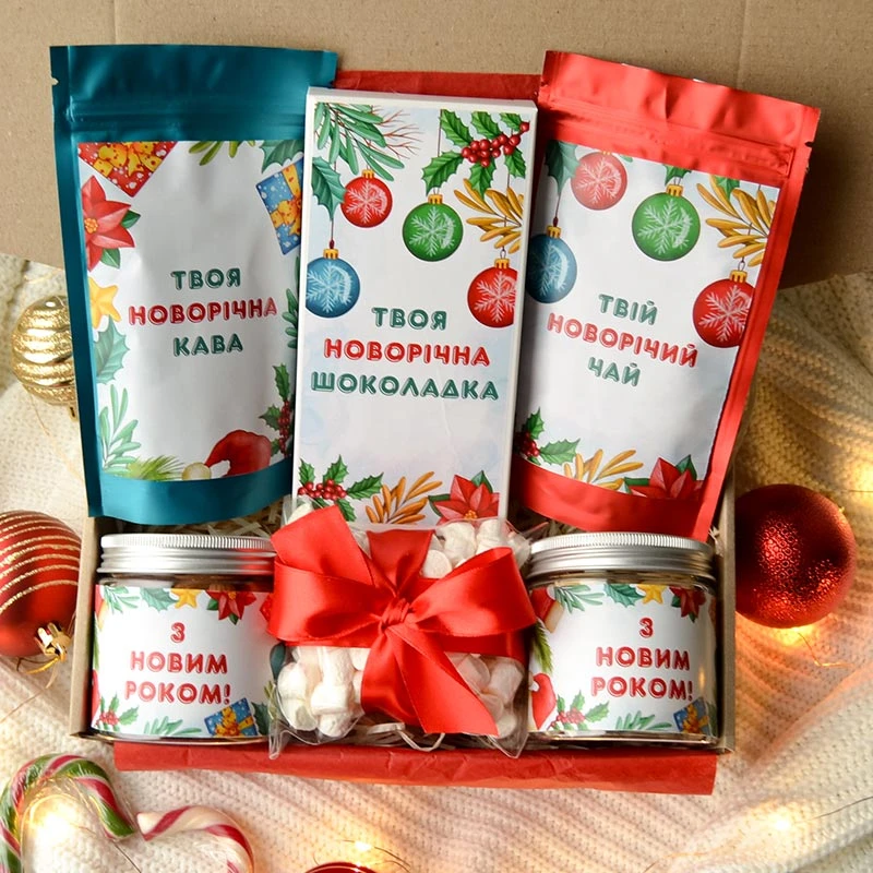 Новорічні бокси часто мають більш яскраве, святкове оформлення, різдвяні — стриманіше, тепліше, з акцентом на традиційні смаки. Але в обох випадках ключовою залишається ідея затишку та спільного святкування.
